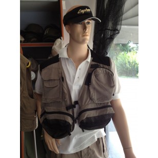 gilet da mosca,colore beige, con rete sulla parte delle spalle.taglia L.