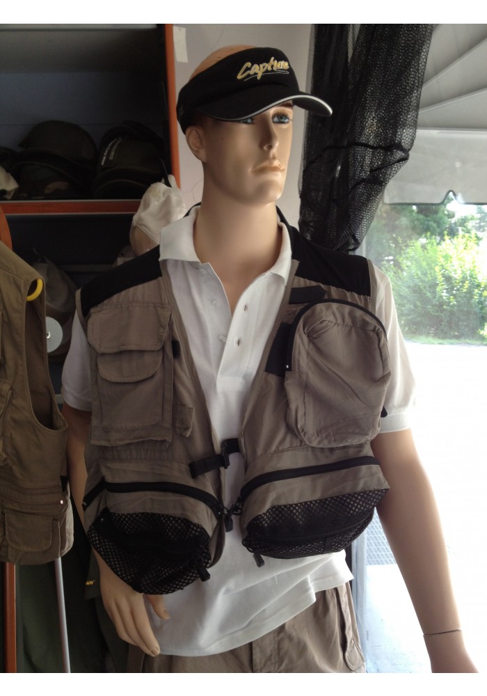 gilet da mosca,colore beige, con rete sulla parte delle spalle.taglia XXL.