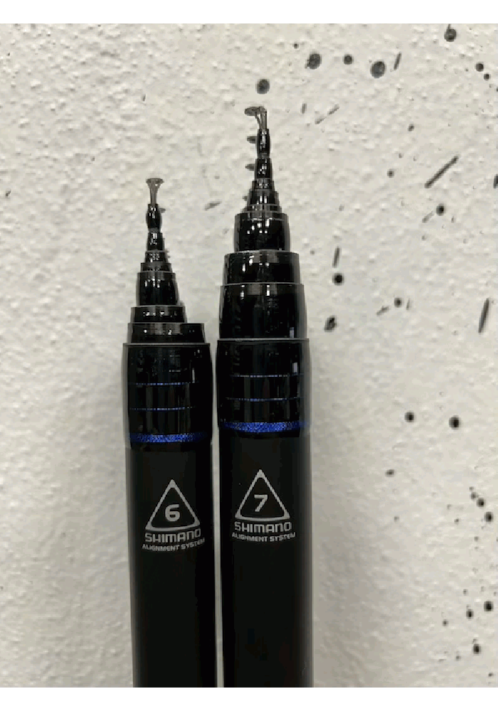 Le canne sono disponibili sia nude che montate con porta mulinello Fuji e anelli Fuji K Alconite. Disponibile in misura 6 o 7 metri.