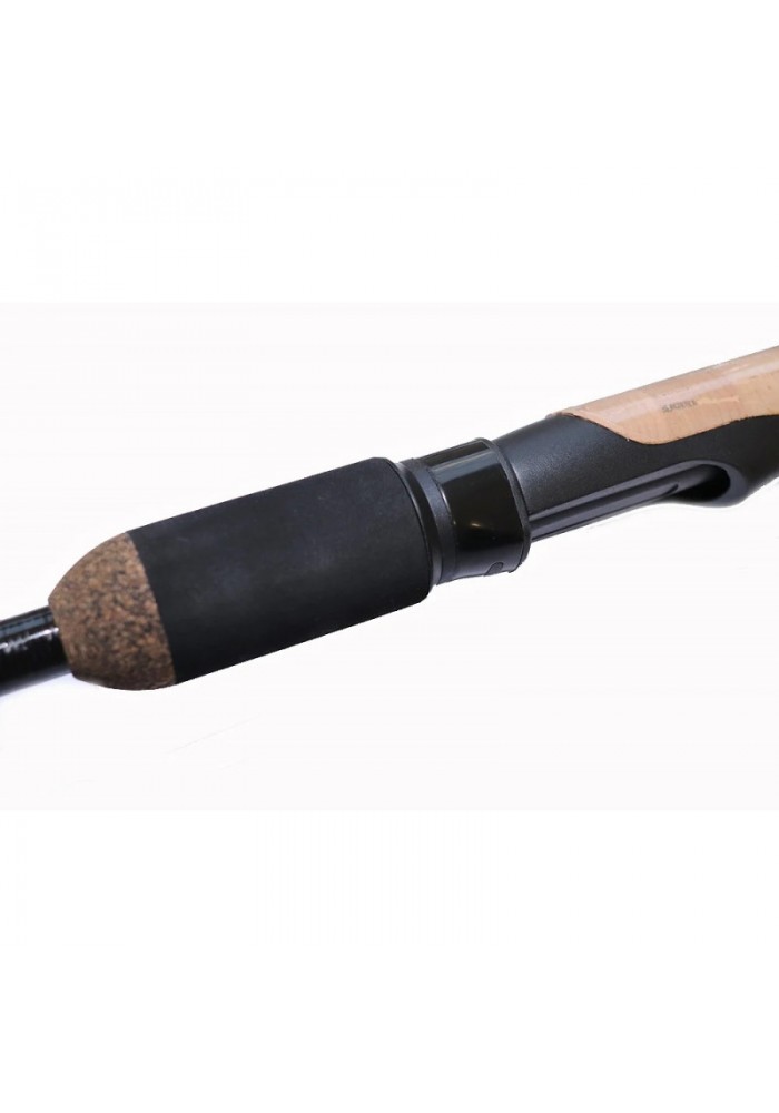 Il manico combina sughero ed EVA con un portamulinello taglia 16 bloccabile e una combinazione di anelli bi-puff e poi mono.
