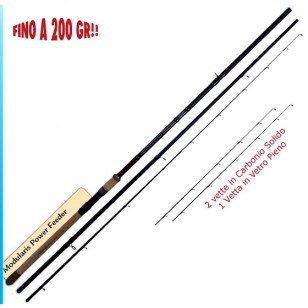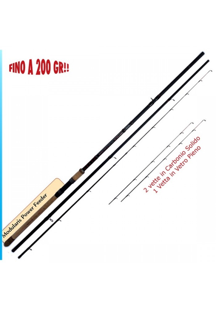 Serie di canne "allround" pronte e potenti, consigliabili per la pesca in fiumi o canali con correnti medio forti. La canna è costruita in High Modulus Special for Competitions quindi dotata di un ottima potenza. L'azione è progressiva e viene ben distribuita sul fusto mantenendo sempre una buona riserva di potenza anche nel mare. Nelle grammature più alte possono sostenere correttamente feeder da 150 gr, ideali per cercare barbi di taglia o grosse carpe, ma è altrettanto valida se usata in grammature inferiori per la cattura di mormore ed orate in mare. L'allestimento è ben curato: anelli black diamond, portamulinello a vite con sezione di sughero naturale e anelli a doppio ponte. In dotazione due vettini uno in powerglass e uno in solid carbon.