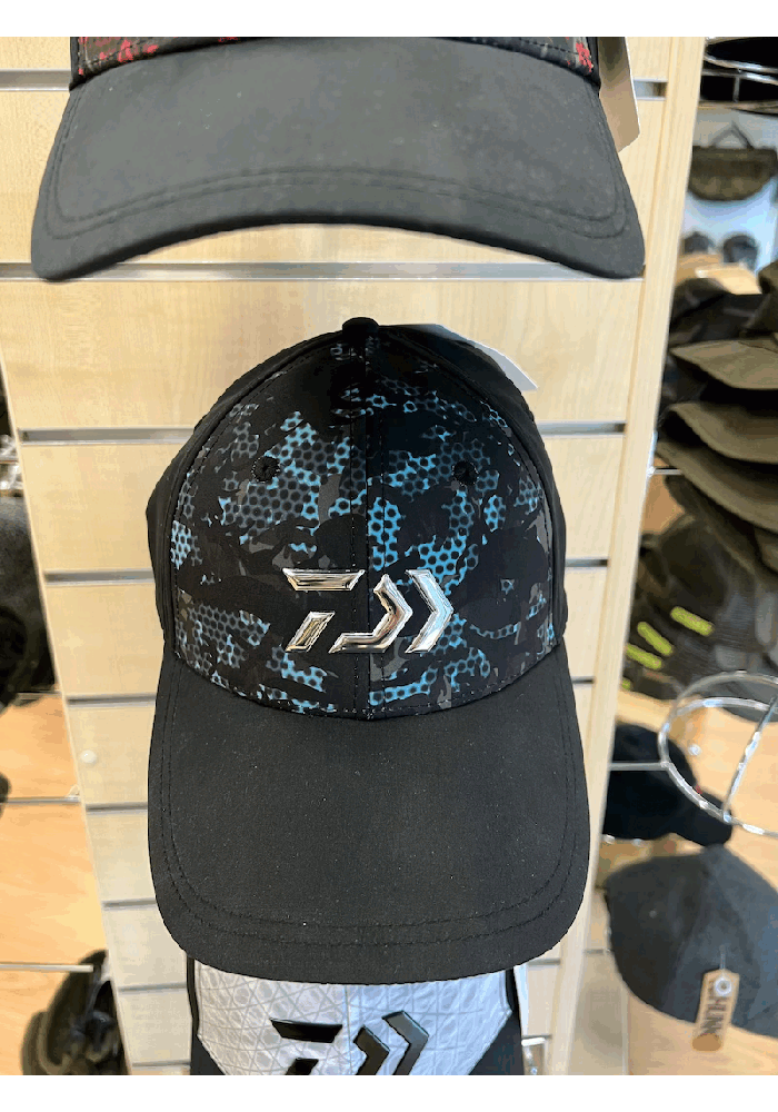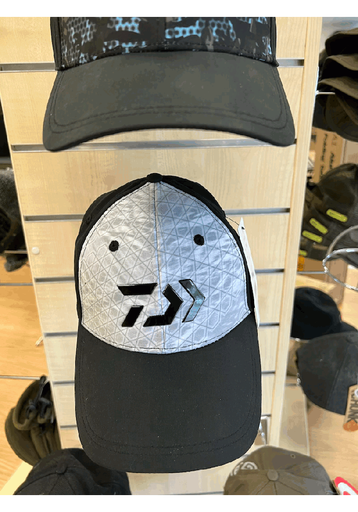 Un berretto a visiera curva con il nuovo motivo Daiwa e un logo D-Vec in rilievo cromato sul davanti. Disponibile in tre colori grigio/nero, rosso e blu, con chiusura posteriore a scatto regolabile sul retro.