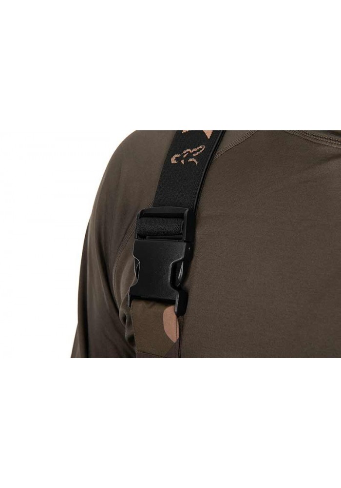 Le salopette sono dotate di spallacci elasticizzati con marchio Fox con fibbie a sgancio rapido e vita parzialmente elasticizzata