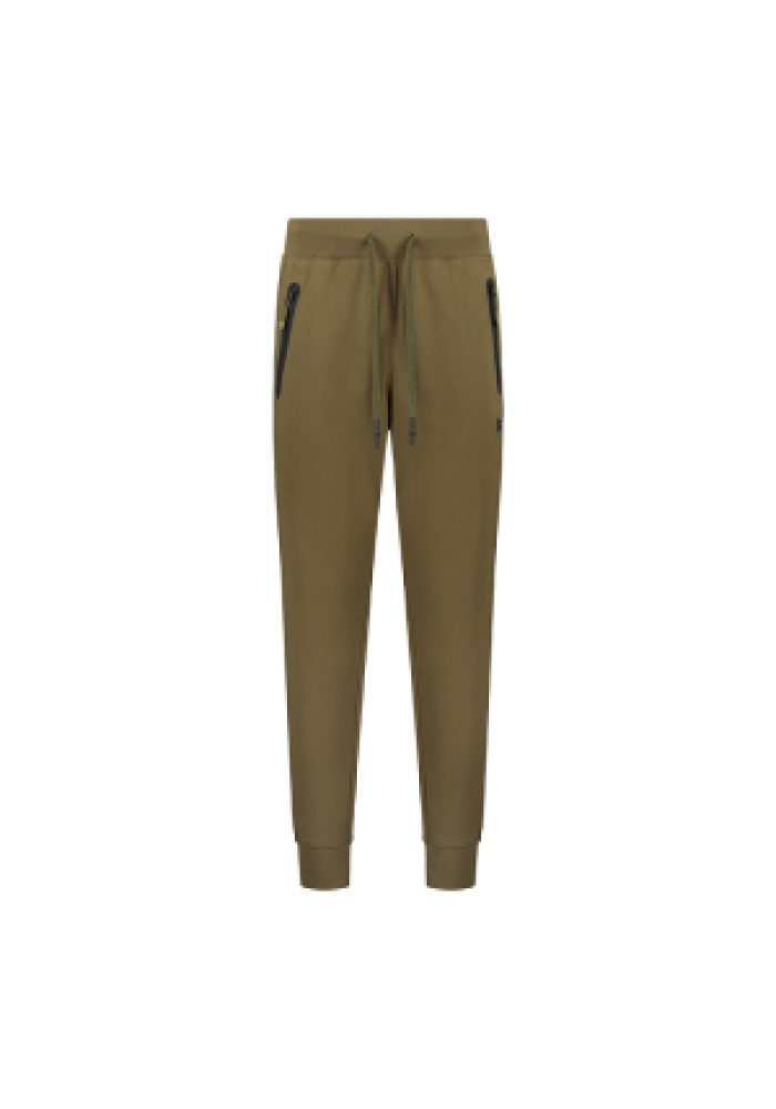Questi nuovi jogger aderenti verde oliva hanno dettagli in stile combattimento e una finitura in pile spazzolato.