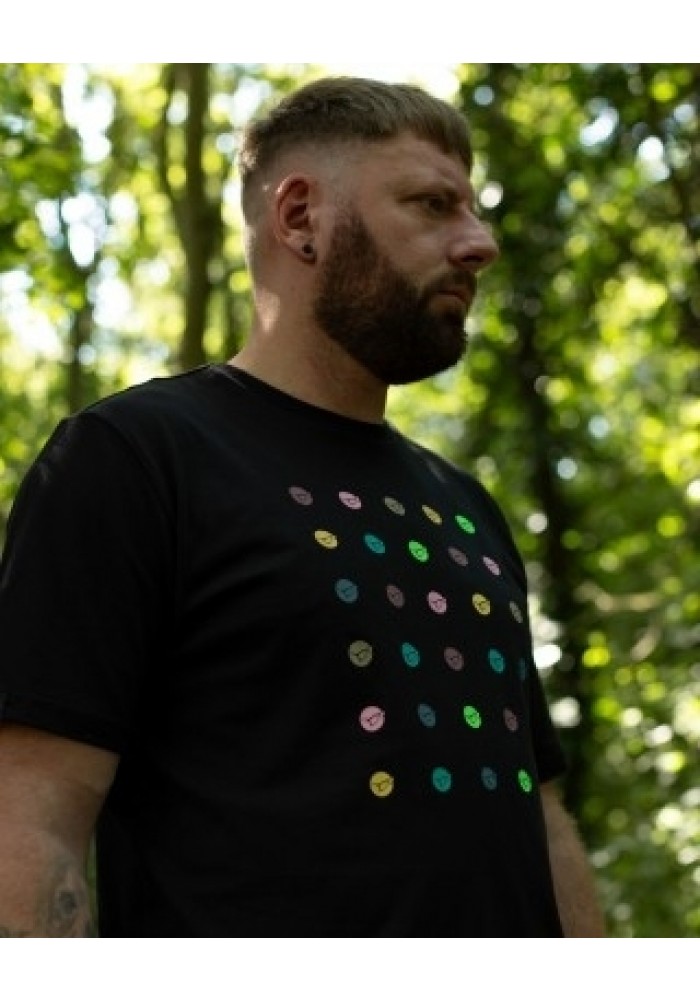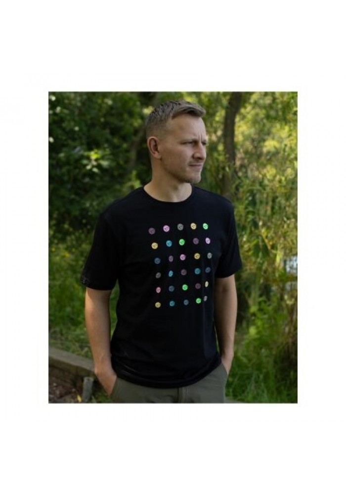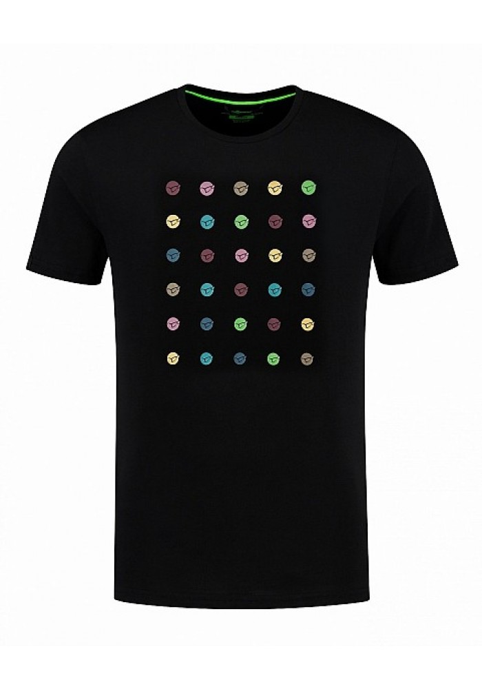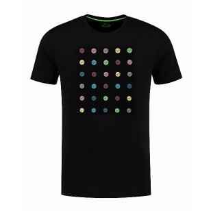 Disponibile solo in nero, la parte anteriore di questa t-shirt presenta un design a punti composto da 30 loghi Korda multicolori, da cui il nome Dot Tee.