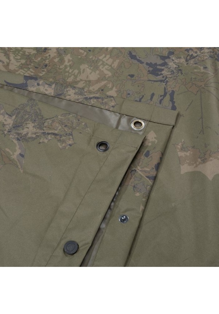 I bottoni di chiusura a pressione lungo i lati del poncho consentono di aprilo come un telo per permetterti attraverso i due occhielli di legarlo o sospenderlo sul bordo per formare un riparo inclinato contro il vento o dormirci sotto.