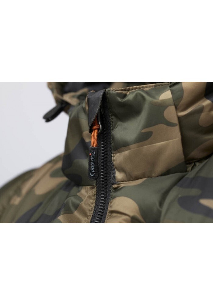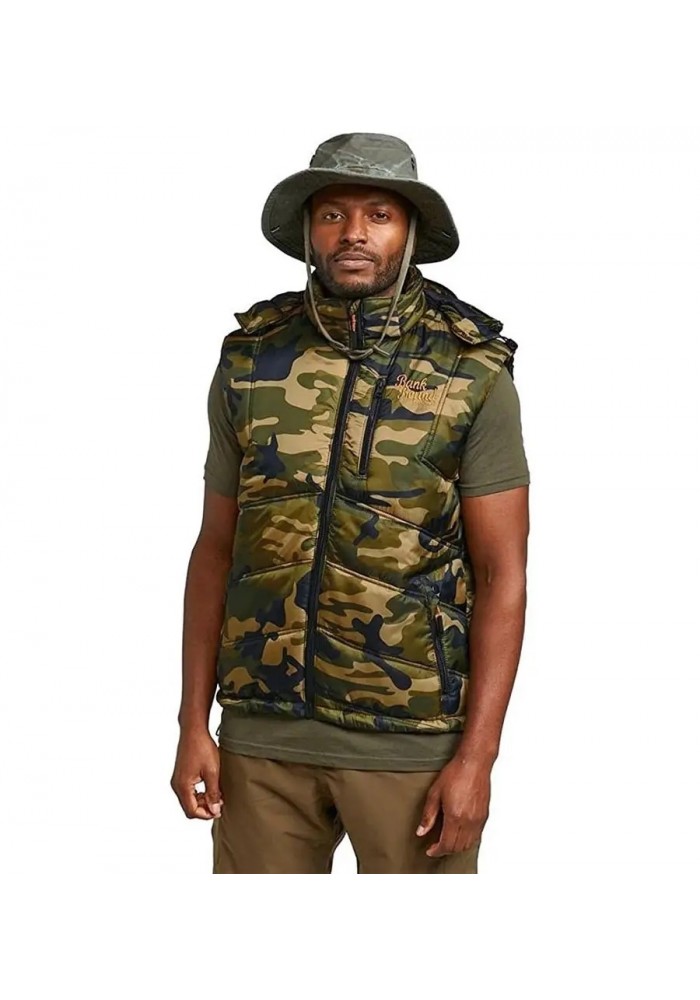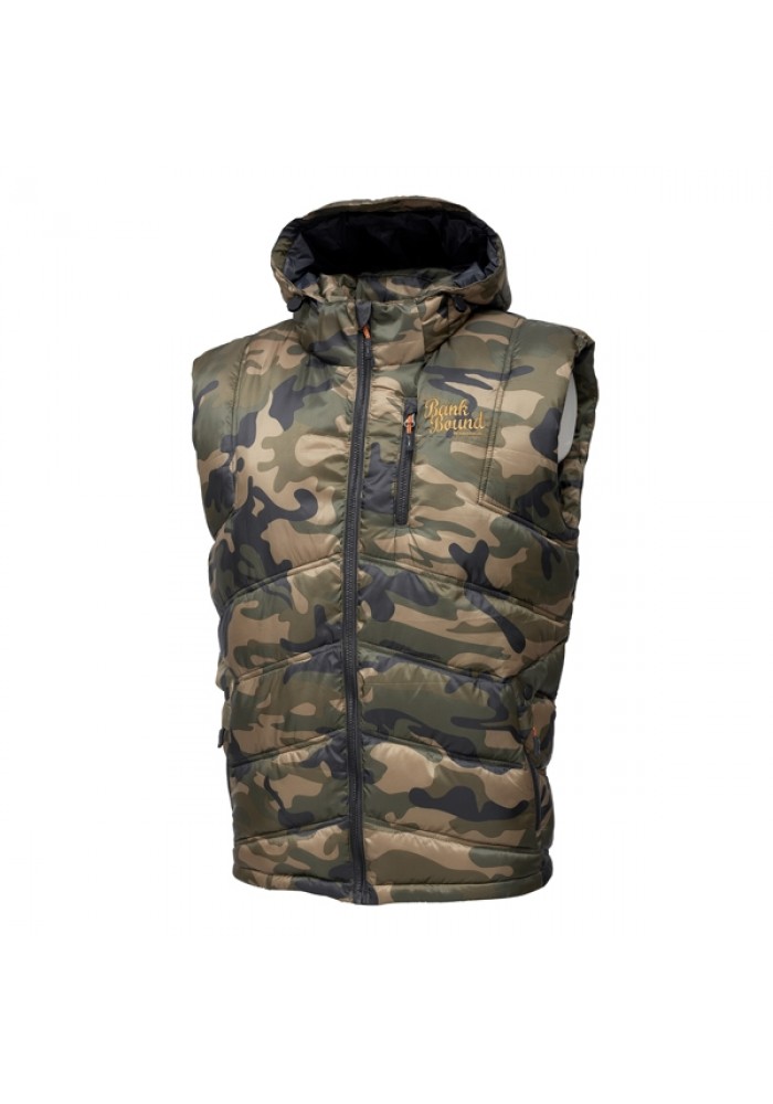 l Bank Bound Camo Thermo Vest di Prologic è fatto di un materiale in poliestere morbido ma robusto con una rifinitura idrorepellente. L’imbottitura è leggera e trattiene molto calore. Il gilet ha tre tasche con cerniera e un cappuccio regolabile. Disponibile nelle taglie da M a XXL. Perfetto per la pesca e altre attività all’aperto!