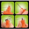 Pratico accessorio caratterizzato da 4 tool in uno. Una estremità serve per rimovuere il rivestimento esterno dei trecciati ricoperti. L'estremità opposta serve per mettere in tensione gli ami, utile per tirare nodi oppure per stirare materiali "stiff". Una delle altre estremità è caratterizzata da un piccolo d-rig, utile per creare un perfetto profilo a "D". Al lato opposto del piccolo d-rig, si trova un grosso loop, che vi consente di creare il loop perfetto per chod e hinged stiff rig.