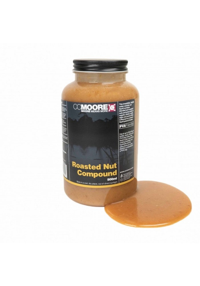 Il Roasted Nut della CC Moore è un estratto di noce naturale arrostito, si tratta di un nuovo additivo liquido estremamente efficace che è stato progettato per essere applicato a esche di numerose forme diverse, al fine di migliorare le loro proprietà attrattive. L’unione dei due gusti arrosto-cremoso è una specifica novità della CC Moore, e fornisce zuccheri naturali, amido, oli e proteine per stimolare i pesci nell’alimentazione. Il CC Moore Roasted Nut Extract 500 ml è un liquido denso ed è l'ideale all’interno di mix per boilies, stick, method e particles. Si consiglia di usarlo fino a 30 ml/kg..