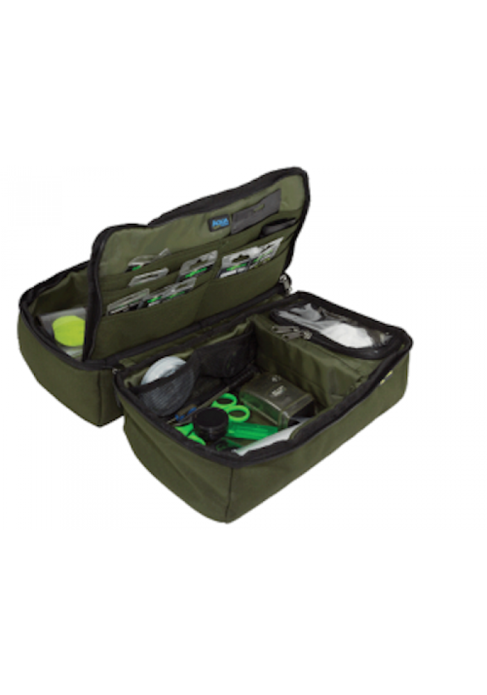 Dieci tasche interne e cinque portafogli in plastica trasparente offrono spazio di archiviazione funzionale, inoltre c'è uno scomparto con cerniera foderato in alluminio per mantenere i sacchetti di PVA lontano dall'umidità.