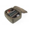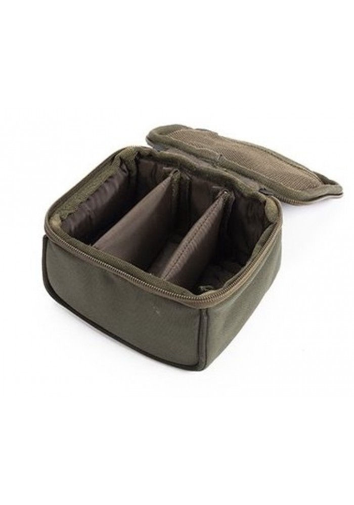 Contenitore imbottito e cerniera superiore con maniglia di trasporto e due divisori rigidi rimovibili. Tasca con zip interna in rete sotto al coperchio. Può contenere tre Small Pouch.