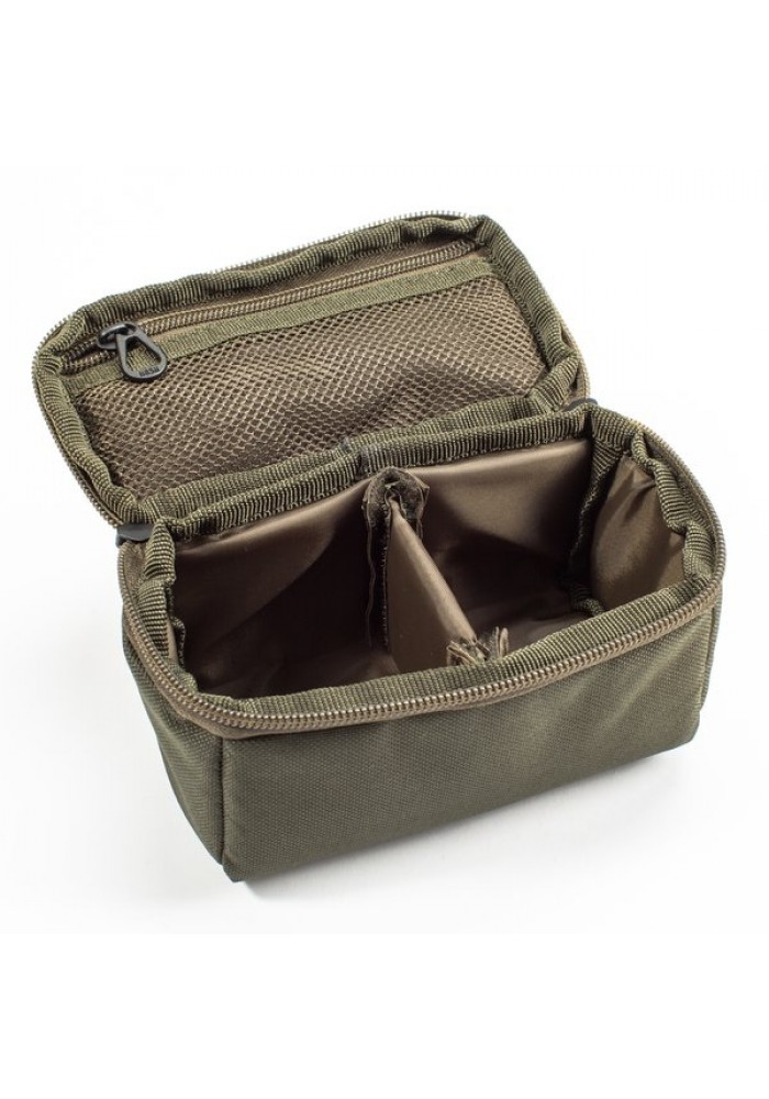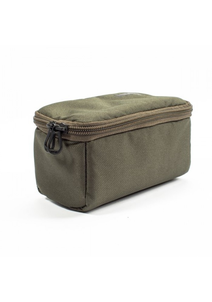 Contenitore imbottito con zip a tre lati e divisorio centrale rimovibile. Può contenere due Small Pouch. Tasca con zip interna in rete sotto al coperchio.