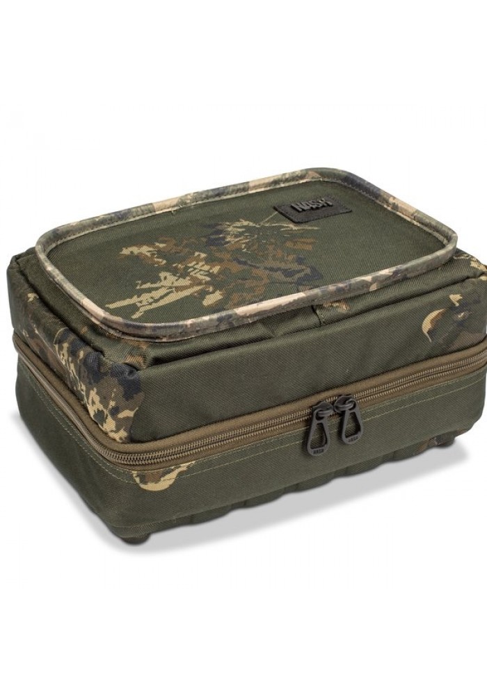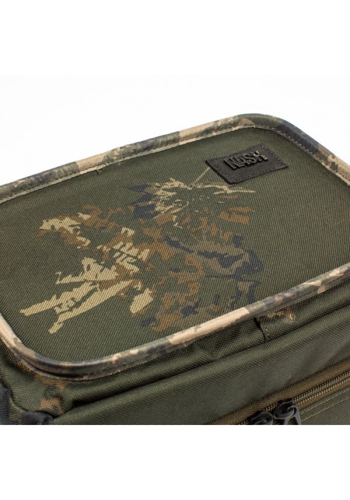 Design con ampio vano porta oggetti e chiusura a cerniera, scomparto centrale per gli accessori e spazio su misura per la Medium Tackle Box.