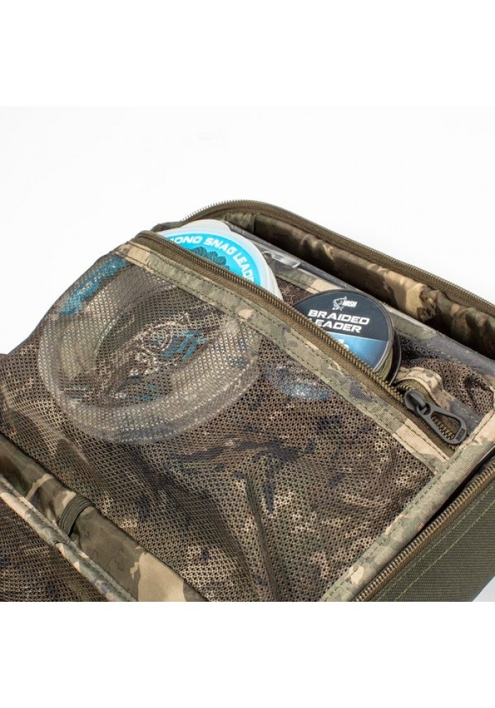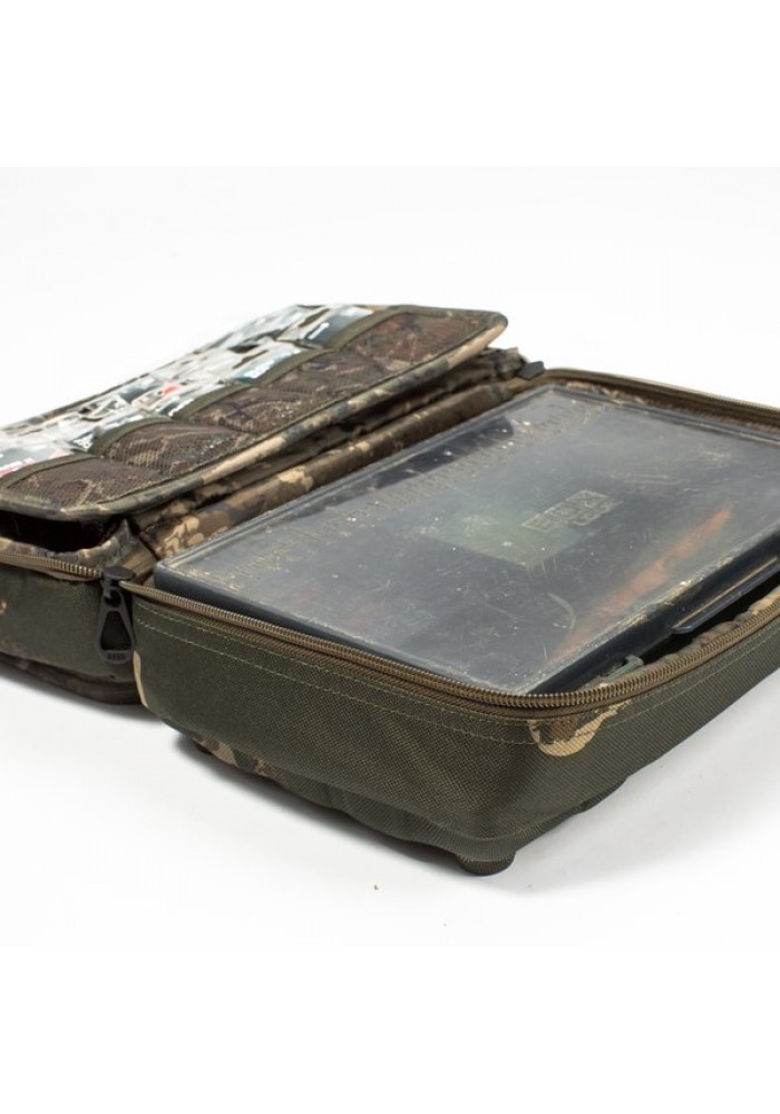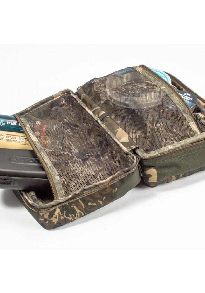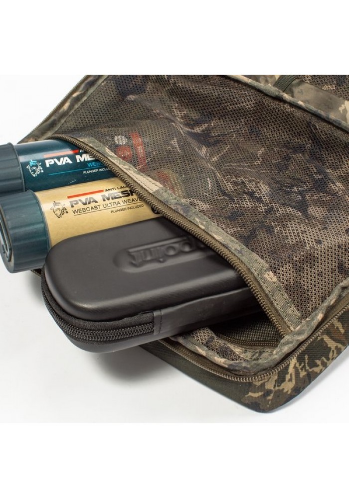 La partizione centrale offre 15 tasche a rete per organizzare tutti i pacchetti di ami e TT, con una grande tasca a zip per contenere PVA baiting tools, marker e bobine. Due anelli elastici possono trattenere le lime Pinpoint. Rifinito con una base robusta in EVA impermeabile, oltre a doppia zip sovradimensionata e un accurato coperchio a vassoio in EVA per tenere a portata di mano gli attrezzi durante le operazioni di legatura o innesco.