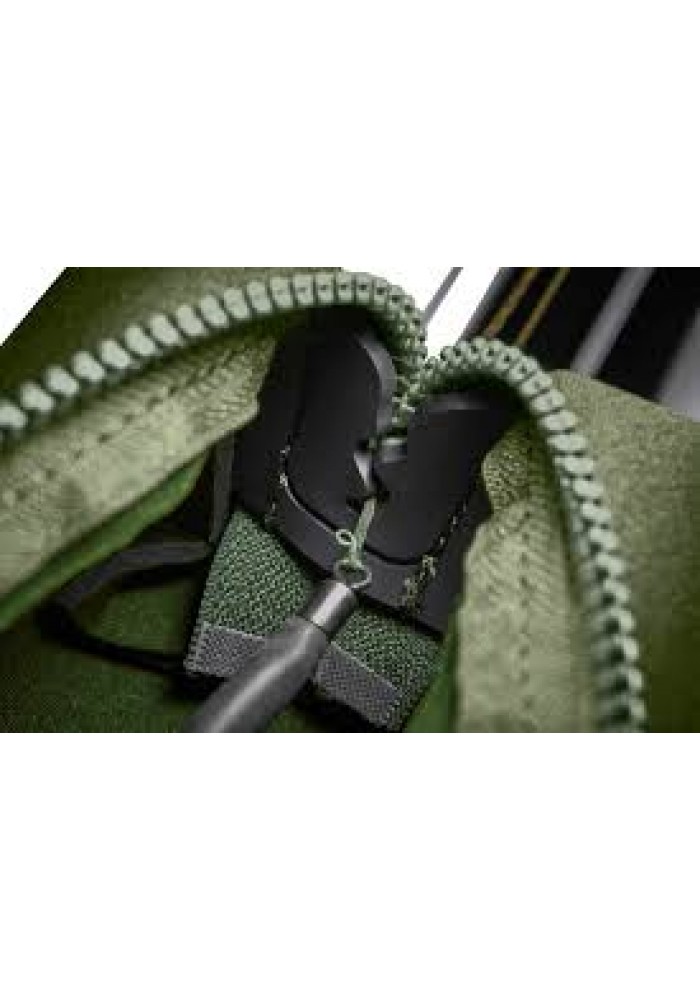 Alla fine della vostra sessione, stendete gli accessori per la pasturazione o gli accessori per la misurazione del fondale all’interno dell’Holster, mettete accuratamente il leader o la lenza nell’appositamente studiato gommino con chiusura a onda, chiudete la zip per assicurare il contenuto e successivamente fissate il loop in Velcro all’anello più grande della punta della canna.