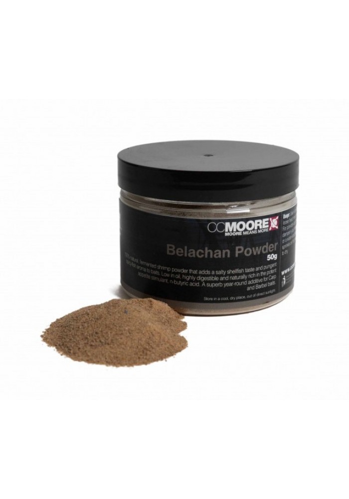 Belachan Powder è una polvere di gamberetti fermentata naturale al 100%, importata esclusivamente da CC Moore & Co Ltd dalla Malesia. Ha un pungente aroma di crostacei e un forte gusto salato ed è un superbo ingrediente per esche e attrattivo per l'uso in boilies, hookbait e miscele di sacchetti e come rivestimento per esche.