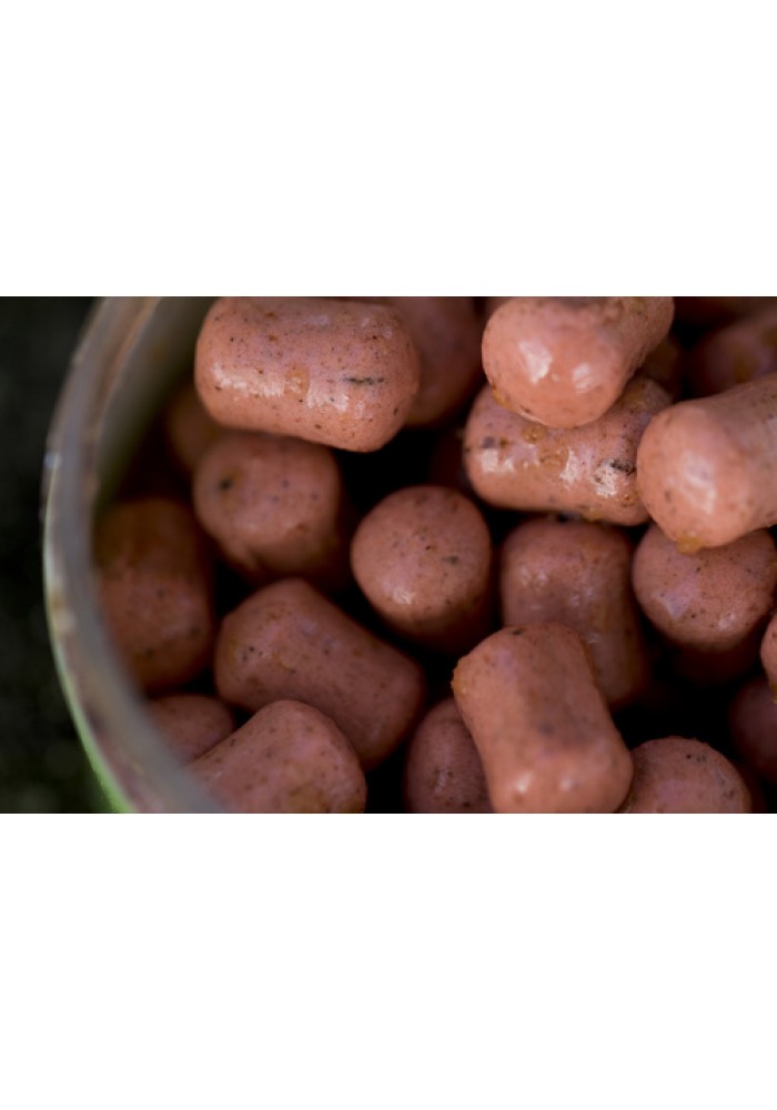 Dumbell bilanciati 14 mm x 10 mm imbevuti nel proprio dip.L’aroma è di krill con un colore rosa formidabile..