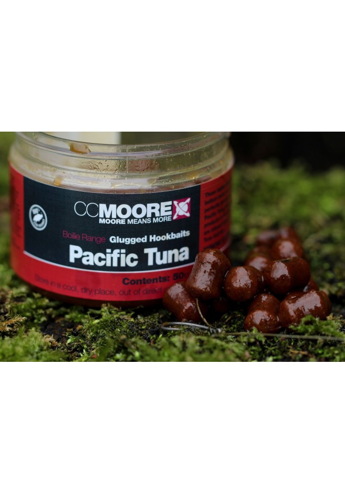 Le Pacific Tuna sono boilies naturali, di colore rosso scuro intenso, che combinano le proteine solubili del pesce, quelle del latte e le proteine vegetali, il tutto insieme a potenti stimolatori d'appetito. Il risultato è una performante boilies all season, grazie all'elevata solubilità e digeribilità anche in acque fredde. Sono caratterizzate da una buona durata in acqua, e grazie all'alto contenuto di aminoacidi e di proteine di alta qualità interagiscono rapidamente con l'acqua dello spot. Contengono l'ormai famoso Robin Red di Haith's, derivati del tonno e di molluschi lavorati a basse temperature, ed estratti vegetali. Gli hookbaits sono dumbells 10 x 14 mm infusi nel liquido attrattore della stessa linea. Questo aumenta notevolmente la presenza di attrattori solubili e il forte aroma salato di tonno..