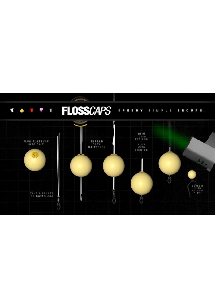 I Floss Caps sono stati studiati per poter essere inseriti sul nostro Ago Giallo ( Braid Needle ) nel caso utilizziate esche dure ed anche sul nostro Ago Viola (Fine Needle) nel caso usiate esche più morbide..