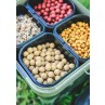 Questo lo rende adatto a situazioni in cui si voglia pasturare con pastura di dimensioni diverse e permette un facile accesso a diverse esche in un unico secchio e di miscelarle quando necessita.