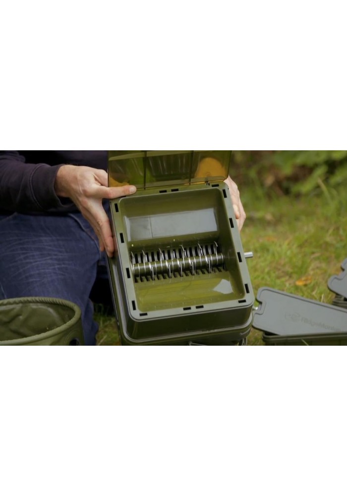 Advanced Boilie Crusher FULL KIT di RidgeMonkey è un set completo che facilità la preparazione di mix spod e pasture mediante la frantumazione di boiles e comprende l'Advanced Boilie Crusher e l'unico secchio con il quale è compatibile, ovvero il Modular Bucket Syste da 17 litri sempre di RidgeMonkey.
