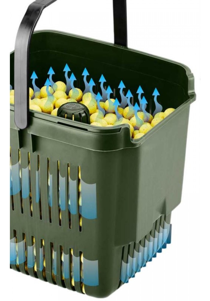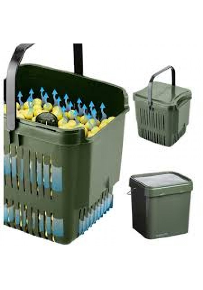 Il Pureflo® Air-Dry System è stato sviluppato per consentire l'essiccazione ad aria di boiles fresche o congelate, con un unico "cono di asciugatura ad aria" per consentire la massima circolazione dell'aria, offrendo al contempo la massima protezione e attenzione all'esca da ladri come i roditori e gli uccelli. Progettato per essere alloggiato all'interno di uno dei nostri contenitori quadrati di 17ltr, il Pureflo® Air-Dry System si presta anche a bagnar le esche con liquidi, utilizzando il metodo brevettato "Lift, Twist & Stack" per separare l'esca da qualsiasi liquido .