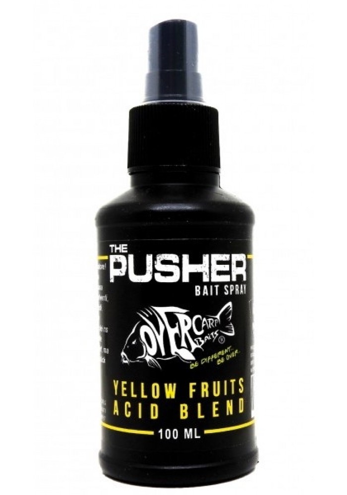 The Pusher, come dice il nome, è un vero e proprio “spintore”, creato per potenziare l’attrattività delle nostre esche. La sua composizione prevede l’utilizzo di attrattori di casa Over Carp, aromi combinati con diversi solventi, olii essenziali ed aminoacidi; le medesime composizioni aromatiche utilizzate per la formulazione delle nostre boilies. Consigliamo di utilizzarlo spruzzandolo direttamente nei nostri inneschi, all’interno dei sacchetti delle nostre esche affondanti, nei nostri over stick mix, nei method, nelle pasture, nei pellet ed in qualsiasi esca, dove ci occorre uno stimolo attrattivo immediato. Per la sua complessità, va agitato qualche secondo prima dell’uso e, una volta applicato lo spray, basterà attendere qualche minuto per facilitarne l’assorbimento; inoltre, anche se spruzzato molte ore prima, non creerà alcun tipo di problema, anzi non farà altro che ridonare freschezza ed attrattività alle nostre esche.. Un prodotto innovativo, ultra versatile e dal praticissimo utilizzo che vi consigliamo di portare sempre con voi, e siamo certi che non potrete più farne a meno. Un’arma vincente soprattutto nelle pescate veloci e nelle competizioni. Be Different… Be Over….