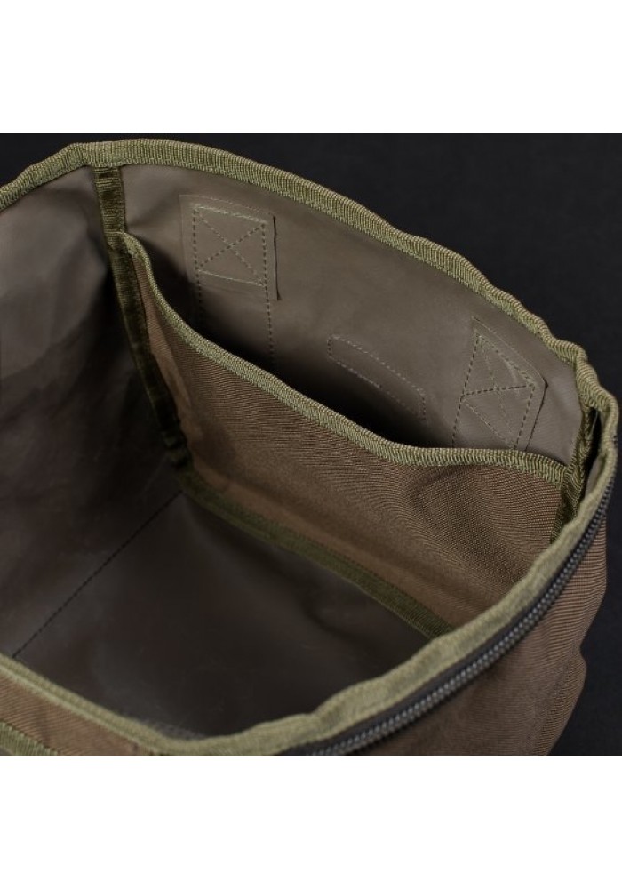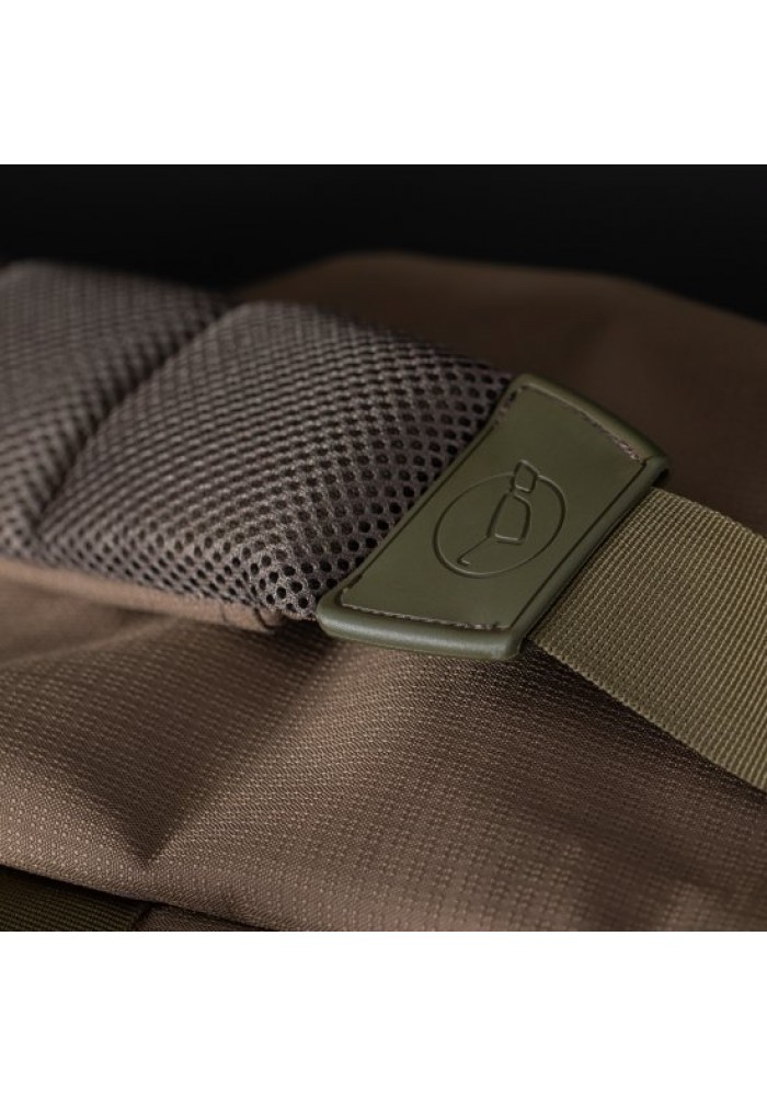 L'esterno ha tasche e cinghie lungo la spina dorsale del borsone per tenere saldamente guadini e picchetti. C'è una tasca con zip per riporre i piombi alla fine di ogni sessione e una tracolla imbottita rimovibile rende il trasporto confortevole.