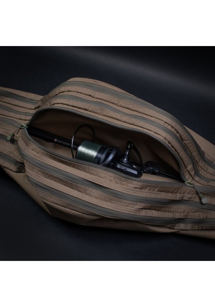Questo esclusivo sistema nella versioei a tre canne, è progettato per proteggere completamente sia le canne che i mulinelli mentre sono completamente assemblati. Accoglie Mulinelli big pit e anelli da 50 mm.
