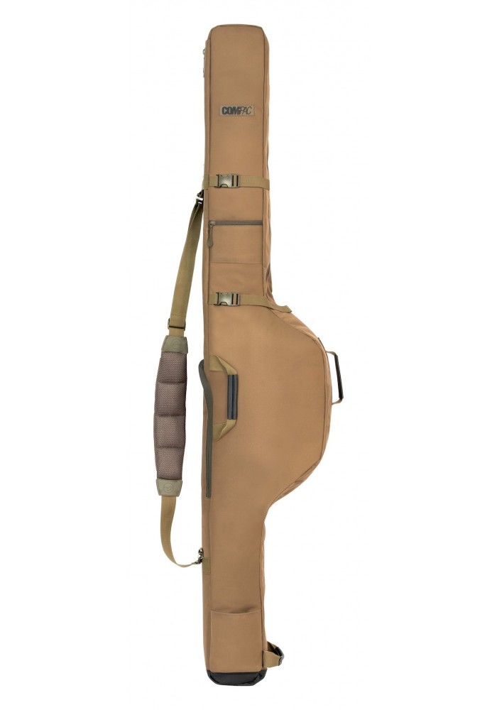 Il Korda Compac Three Rod Holdall è progettato per contenere tre canne e 3 mulinelli composti. Completamente imbottito offre una soluzione compatta per canne da 10,12 piedi o 13 piedi. Altre due canne possono essere aggiunte esternamente con o senza mulinelli. Tre tasche esterne lungo la spina dorsale del borsone, conferiscono una certa rigidità quando caricato, oltre a offrire spazio per guadini e picchetti.