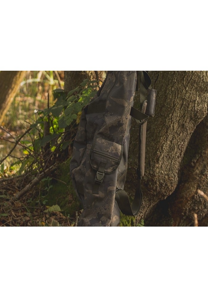 Realizzato in materiale mimetico 600D, con supporto in PU e imbottitura a tutto tondo, questo borsone ospiterà internamente 3 canne montate e 2 canne esternamente. Entrambe le canne singole possono essere fissate all'esterno di questo borsone.