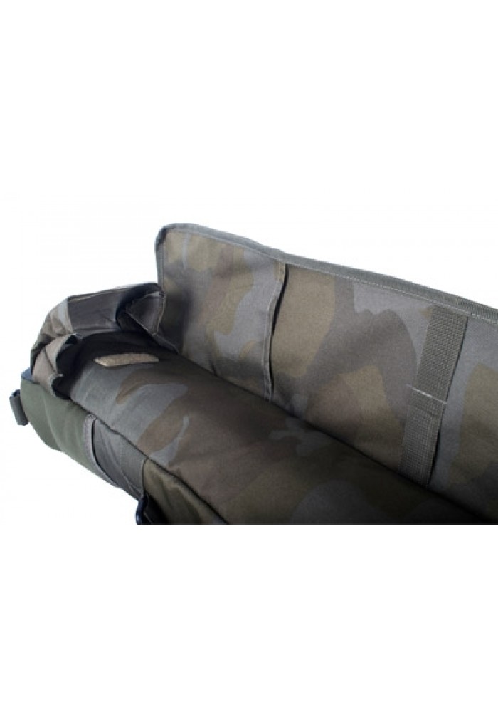 Le cinghie di utilità laterali sono perfette per aggiungere oggetti come un guadino e il lato opposto ha una tasca per piombo con zip e cinghie per 2 picchetti.