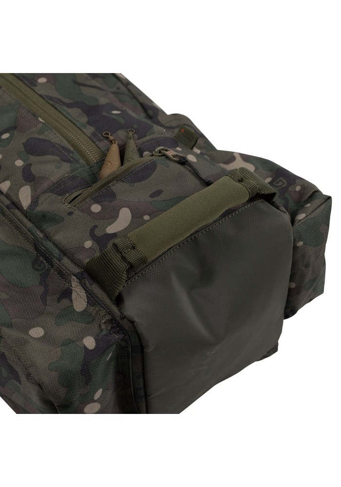 Un'altra tasca più piccola con zip offre spazio per le maniglie delle reti da atterraggio o per le canne da distanza. Sotto la cerniera principale si trova una pratica tasca con cerniera per riporre i piombi dopo la pesca. Per il trasporto delle canne, le custodie per canne da pesca NXC 3 Rod sono dotate di una comoda tracolla staccabile e completamente regolabile, di un'unica maniglia in neoprene per il trasporto, perfettamente bilanciata quando viene caricata, e di due maniglie in neoprene per facilitare il carico. Le maniglie sono posizionate in modo da mantenere le ruote in posizione verticale e al sicuro da eventuali danni. Una clip a D è attaccata alla parte superiore della copertura per soluzioni di stoccaggio salvaspazio. Appendetela in modo sicuro e mantenete la vostra attrezzatura organizzata e facilmente accessibile.