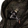 Ampia tasca aperta e cinghie di tensione per ulteriori custodie per canne da pesca