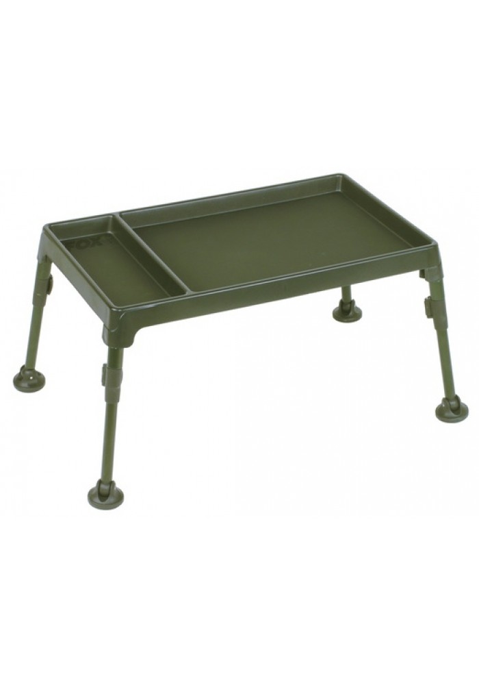 Il tavolino Fox “Bivvy Table” è stato disegnato per garantire spazio e facile accesso per gli accessori più utilizzati durante le sessioni di pesca. Consente all’angler un’agevole organizzazione senza essere “sommerso” di materiale, tenendo oggetti quali scatole porta-minuteria, telefonini, chiavi dell’auto, tazze per le bevande, lontano dal suolo e a portata di mano. La superficie del tavolino è rivestita in speciale materiale antiscivolo, estremamente robusto, che consente un sicuro posizionamento di bevande calde. Ogni gamba del tavolino è ripiegabile per consentire un’agevole stoccaggio durante il trasporto, ed è caratterizzata dalla possibilità di essere allungata grazie al sistema “cam locking” e da un piede estremamente largo per un sicuro appoggio la suolo.
