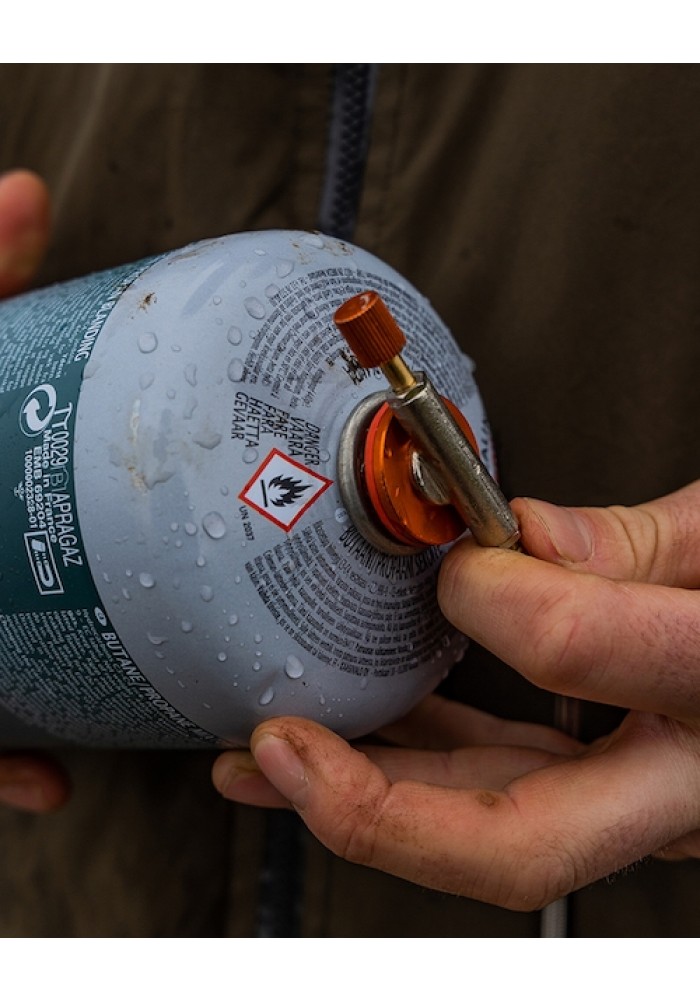 Fornello compatto che può essere comodamente richiuso e conservato all’interno di un bollitore Fox