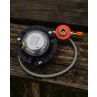 Design a 3 gambe con connessione alla cartuccia del gas tramite una manichetta per maggiore stabilità