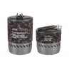 Nella versione da 1,25 il fornello a infrarossi può essere conservato all'interno della pentola insieme ad una cartuccia di gas da 230 g, o, in alternativa, una cartuccia da 500 g può essere conservata per avere una soluzione compatta.