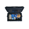 Il coperchio è ermetico ed è fissato con grandi fermagli in metallo con la possibilità di chiudere con un lucchetto se necessario.