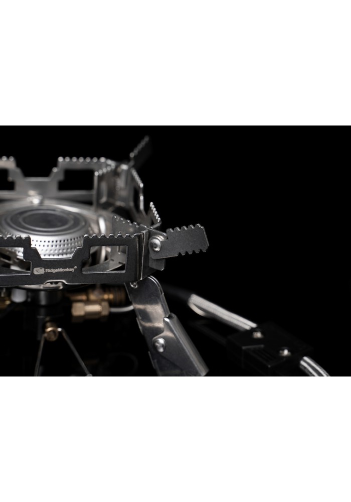 Mini design super compatto completamente nuovo !! Caratterizzato dall'acclamato design quadrilatero super stabile di RidgeMonkey con il suo baricentro incredibilmente basso e quattro gambe pieghevoli regolabili in altezza, il Quad Connect Pro Mini ad alta potenza offre prestazioni, stabilità e versatilità senza rivali nella stufa RidgeMonkey più compatta mai realizzata. Dotato di un nuovissimo tubo del condensatore di gas per garantire una combustione efficiente del carburante anche nelle condizioni più fredde, una connessione del gas a distanza per una configurazione stabile su quasi tutti i terreni e borsa per il trasporto inclusa, supporto per impugnatura del tostapane e supporto per bombole del gas.