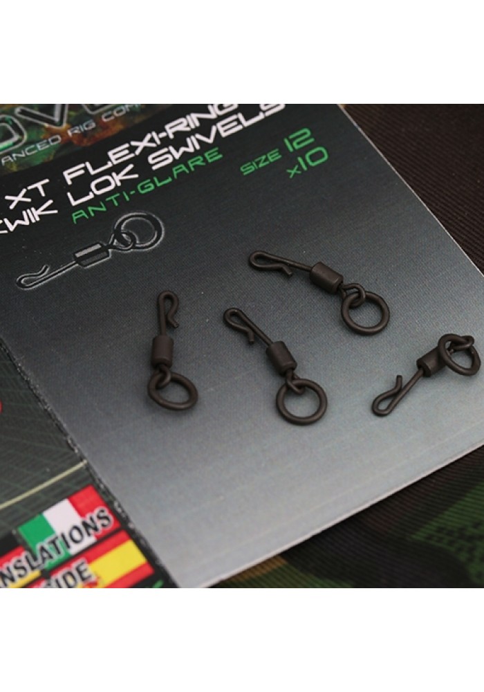 Le girelle a sgancio rapido con anellino XT Flexi-Ring Kwik Lok sono state rafforzati, quindi ora sono uno sgancio rapido perfetto su Ronnie Rigs o altri rig che richiedono che la parte girevole sia fissata all'ano attraverso l'occhiello.