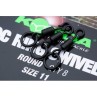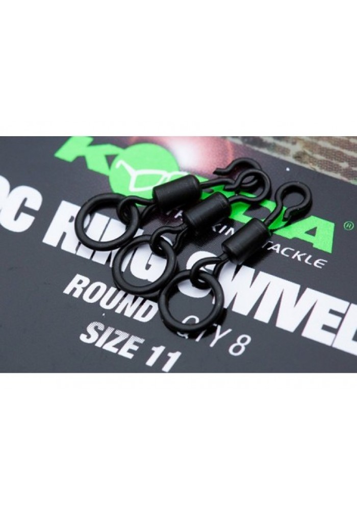 Le Korda QC Ring Swivel Round Size 11 sono girelle a doppio occhiello ma dotate di un occhiello tagliato, simile ad uno sgancio rapido, in cui è possibile inserire l'asola presente sui vostri terminali.