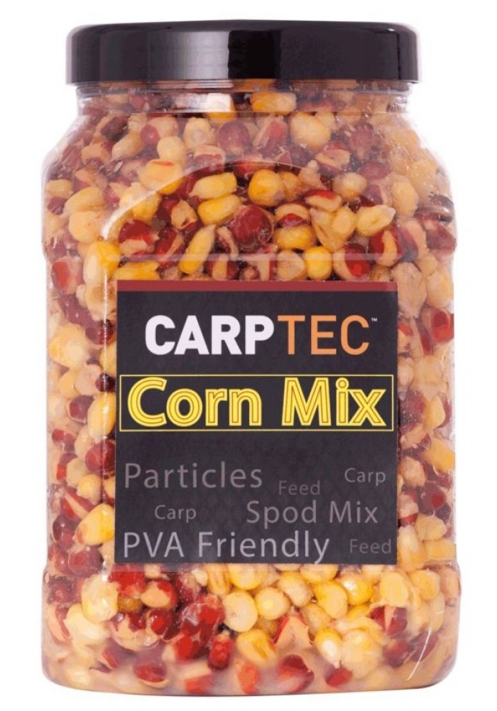 CARPTEC PARTICLES CORN MIX è un barattolo di mais per l'innesco e la pasturazione.