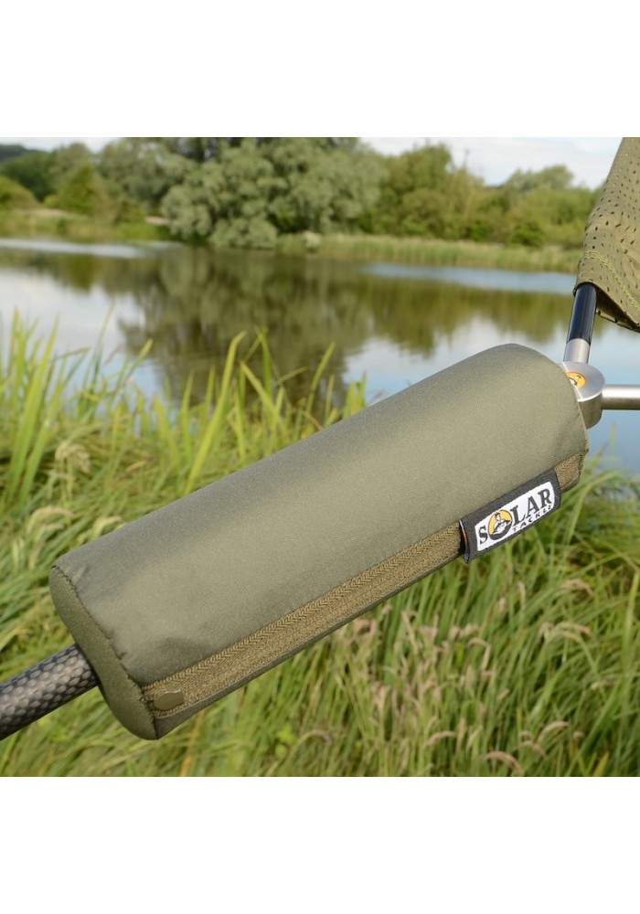Il galleggiante per guadino di Solar Landing Net Float ha un rivestimento in nylon di color verde oliva e la parte interna in neoprene ed è compatibile con la maggior parte dei guadini in commercio. Per inserirlo nel guadino basta svitare il blocco dell'aggancio rapido del guadino, inserire il galleggiante e il gioco è fatto