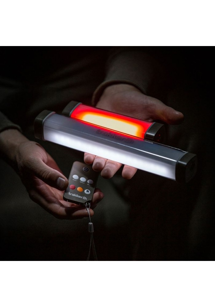 La Nitelife Bivvy Light Remote 150 è una compatta unità che vanta ben sei opzioni d'illuminazione, con fino a 80 ore di funzionamento, power bank d'emergenza e telecomando. Operando con singole pressioni del pulsante sarà possibile circolare tra tre diverse intensità di luce bianca, luce rossa e luce ambrata anti-insetto, con 610 nanometri di lunghezza d'onda che sono meno attrattivi per gli insetti. Una pressione prolungata attiva la funzionalità torcia, e I quattro LED interni indicano il livello di batteria e lo stato di carica. La Nitelife Bivvy Light Remote 150 può essere posizionata facilmente sul tetto del bivvy per illuminare lo shelter di note, grazie ai due potenti magneti sul retro della lampada., e tenute in posizione con la placca metallica fornita in dotazione e marcata con logo Trakker in rilievo