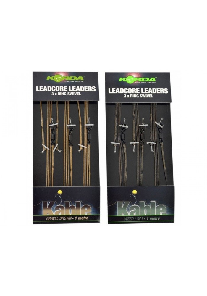 Per usare il leadcore in modo sicuro, i leader devono essere costruiti nel rispetto degli standard. Ecco perché KORDA ha prodotto versioni pronte già legate che sono altrettanto buone, e sicure, come quelle che usa il Team Korda. Cosa c'è di più, essendo costruiti con il Kable, il più duro di tutti i materiali leader, sono perfetti per la maggior parte degli spot che descrivono il Carp Fishing. I leaders con la sola girella e anellino sono stati progettati per l'utilizzo del piombo in line. Perfetti per sacchettini pva. Ogni confezione contiene tre leader perfetti pronti all'uso. Tutte le versioni sono 1 m di lunghezza e sono legati con il leadcore mimetico 50 lb Kable Korda.