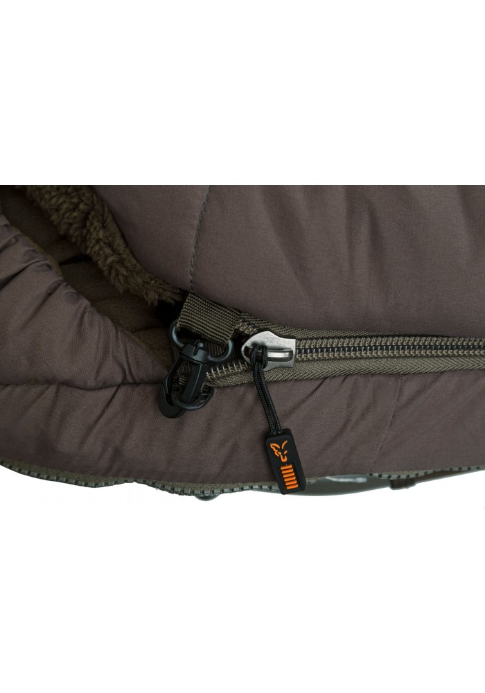 Design con tasca per i piedi, dotata di cerniere che si interrompono all’altezza dei piedi stessi per creare una tasca termica