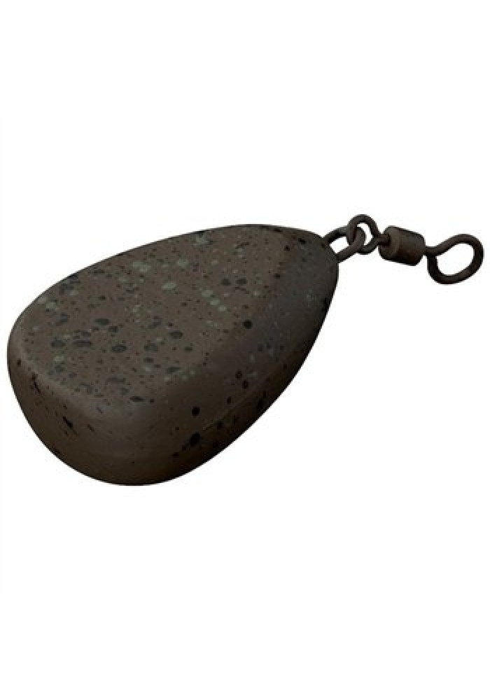 Piombo a forma di pera schiacciata con girella. Nuova versione Camou, colore marrone con piccole macchie nere e grigie, perfetto per mimetizzarsi nei fondali.