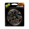 I Piombi Kwik Change offrono innumerevoli possibilità di piombatura e bilanciamento. Disponibili in quattro pratiche misure per adattarsi a svariati impieghi, i pesi vengono agganciati saldamente al finale e, a differenza dei piombini o della pasta di piombo, non si muovono né si spostano durante il lancio o il recupero del pesce. Forniti in un comodo dispenser con 2m di tubo di gomma avvolto all’esterno, i pesi vengono assicurati inserendo semplicemente uno spezzone di tubo di gomma nella fessura. I piombi vengono così bloccati saldamente in posizione in modo da non danneggiare la lenza. Una volta posizionato, il peso può essere spostato inumidendo la lenza e facendolo scorrere delicatamente. Per togliere il peso, basta inserire un ago da innesco con linguetta nel tubo, estraendolo.
