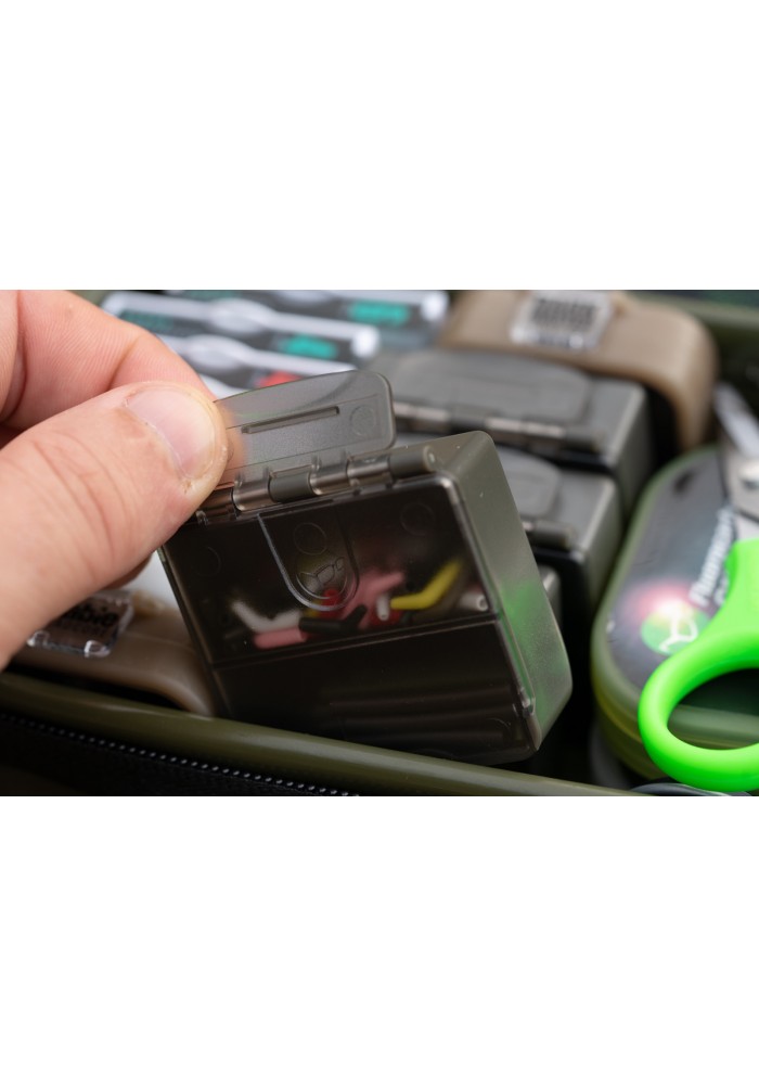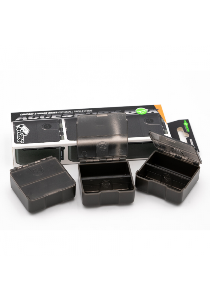 Piccoli box porta minuteria con divisorio interno estraibile. Perfetti per ami, girelle, clip e piccola minuteria in generale. Compatibile con la Tackle Box di Korda. Tre accessory box in ogni confezione.